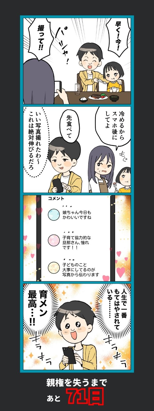“SNSの称賛”に酔いしれる夫を妻はどう見ているのか【100日後に親権を失う育メン 第29話】