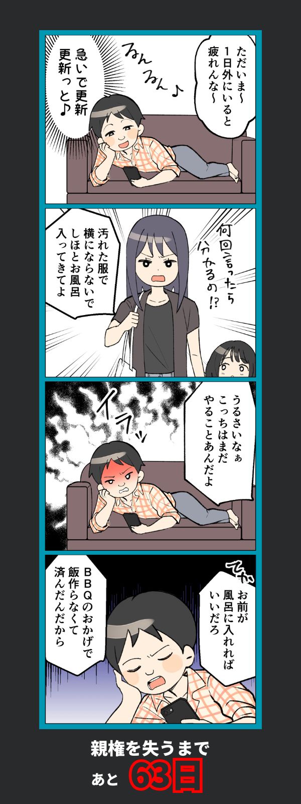 「こっちは疲れてんだよ」外では張り切るのに家では横になる夫に、妻のため息【100日後に親権を失う育メン 第37話】