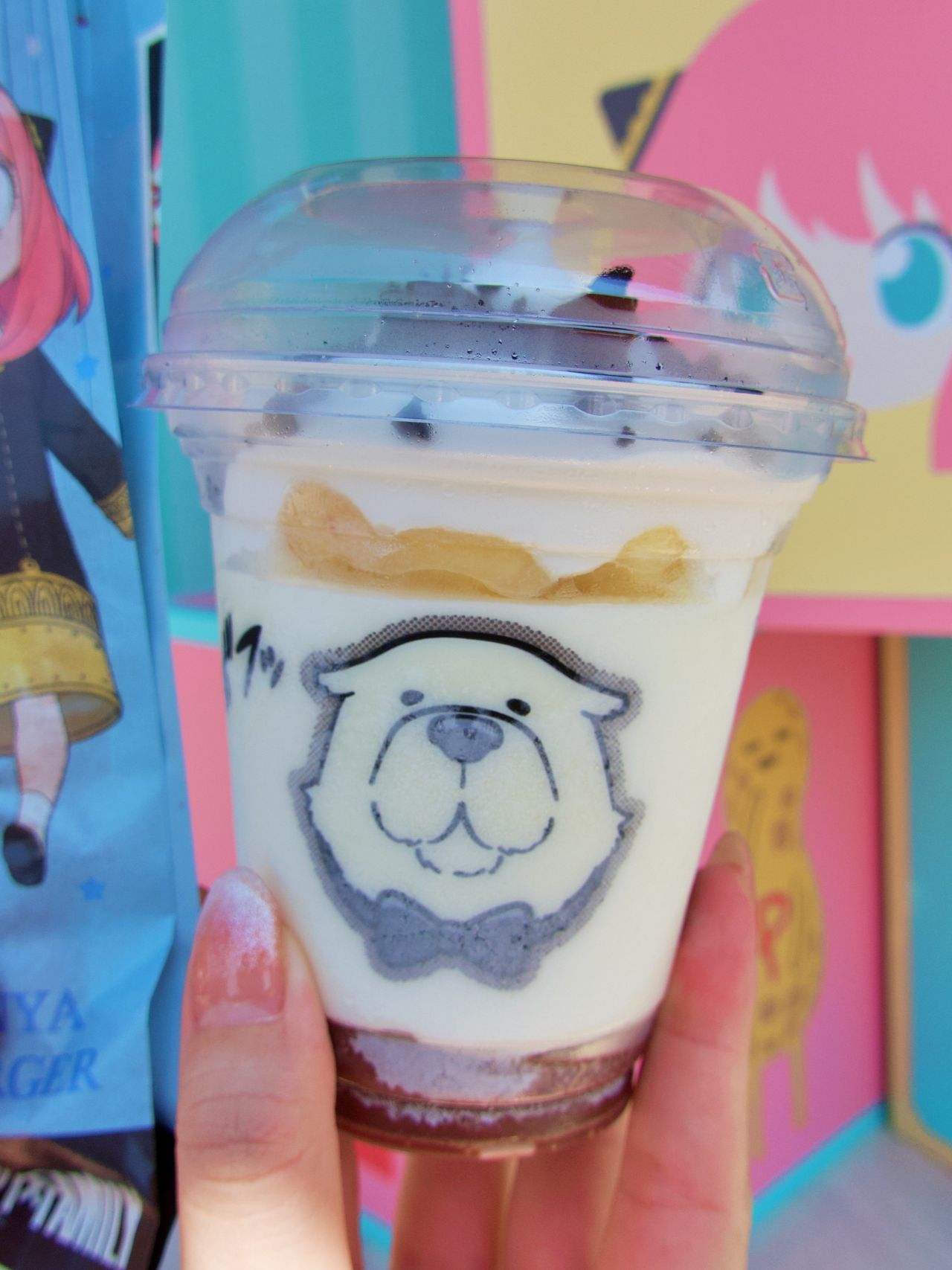 スペース・ファンタジー・ザ・ライド前のカートで買える『SPY×FAMILY』の「ボンドのアイスサンデー 〜バニラ&チョコ〜」は、蝶ネクタイチョコのワンポイントがたまらないかわいさ。フローズンピーチが爽やかで、歩き疲れた体にちょうどいい甘さです。