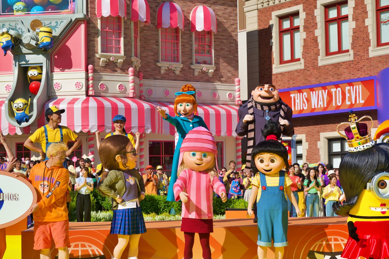 オープニング・セレモニーにはグルーやルーシー、3姉妹のマーゴ・イディス・アグネス、そして新コスチュームのミニオンたちが登場!