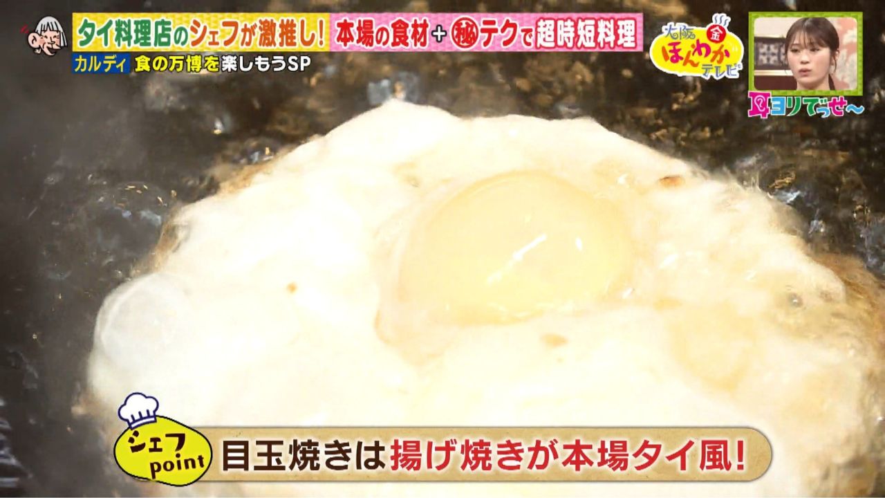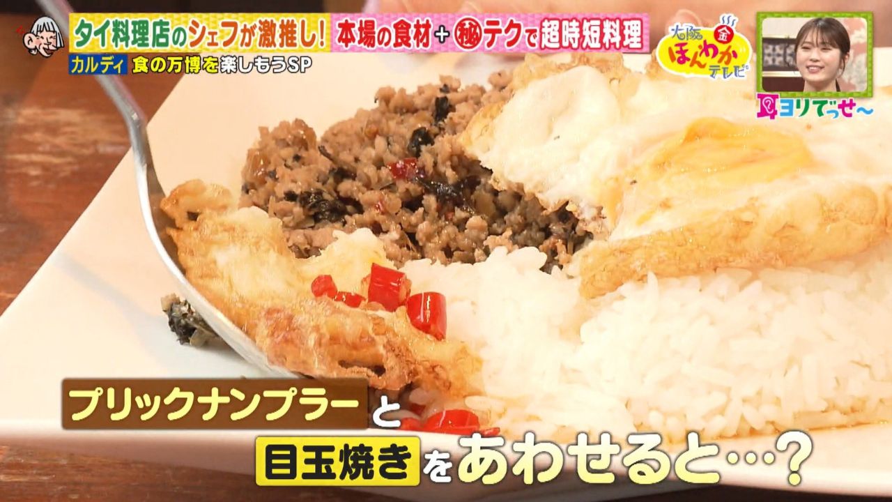 油多めで揚げ焼きにしたタイ風の目玉焼きや、輪切り唐辛子にナンプラーとレモン果汁を加えた「プリックナンプラー」を添えれば、さらに本格的な味わいに。