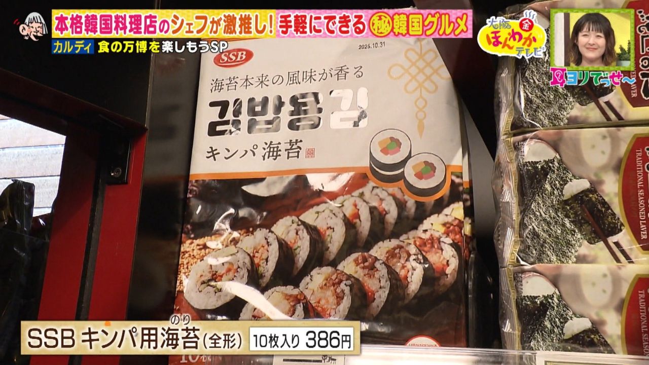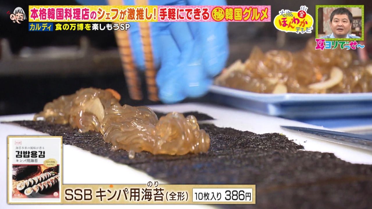 さらに、KALDIの「オリジナル チャプチェセット」、「SSB キンパ用海苔(全形)」を使ってもう一品。