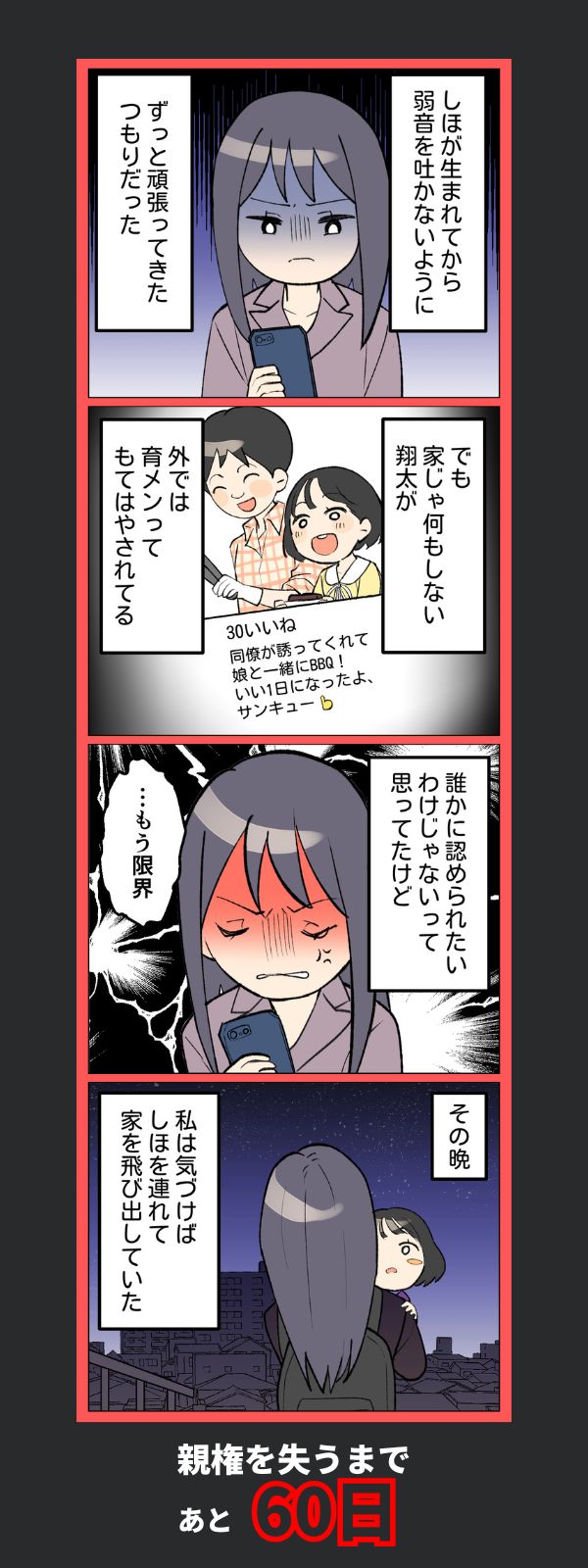 「我慢の限界」逆ギレ夫にプツン…妻が“家を出る”決断をした日【100日後に親権を失う育メン 第40話】