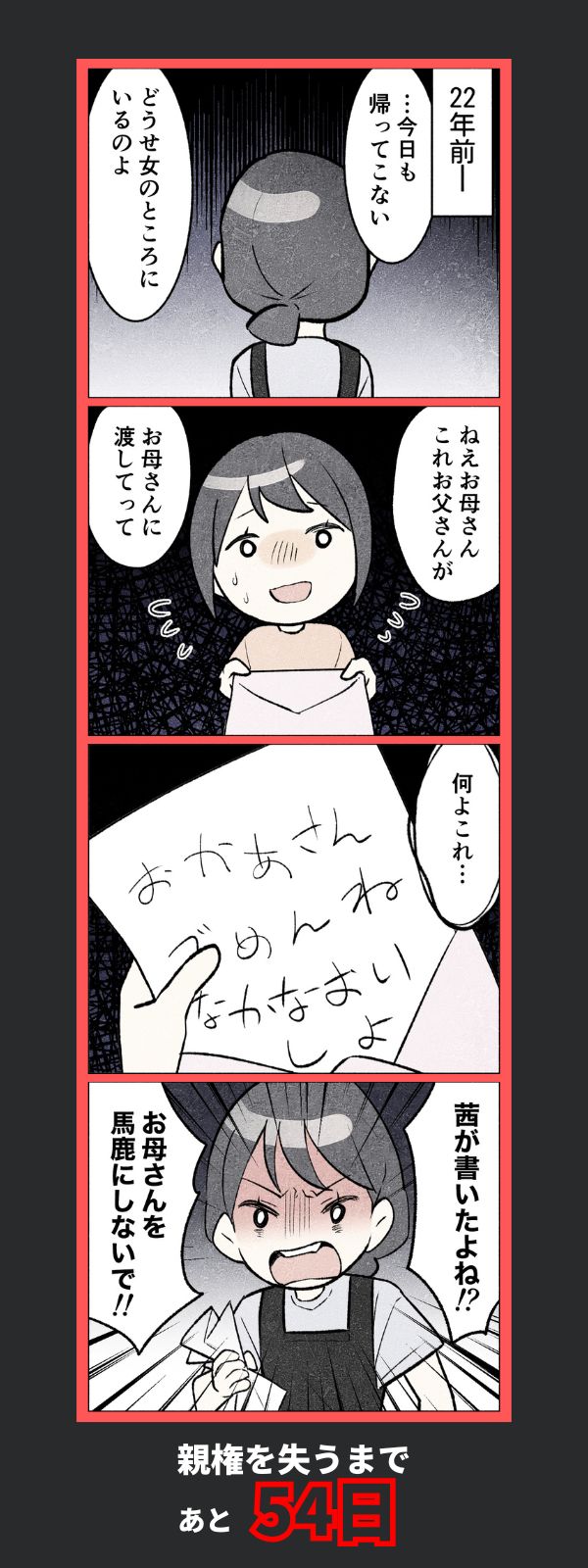 「苦い記憶」母の言葉が引き金に…妻が思い出した“子どもの頃の痛み”【100日後に親権を失う育メン 第46話】