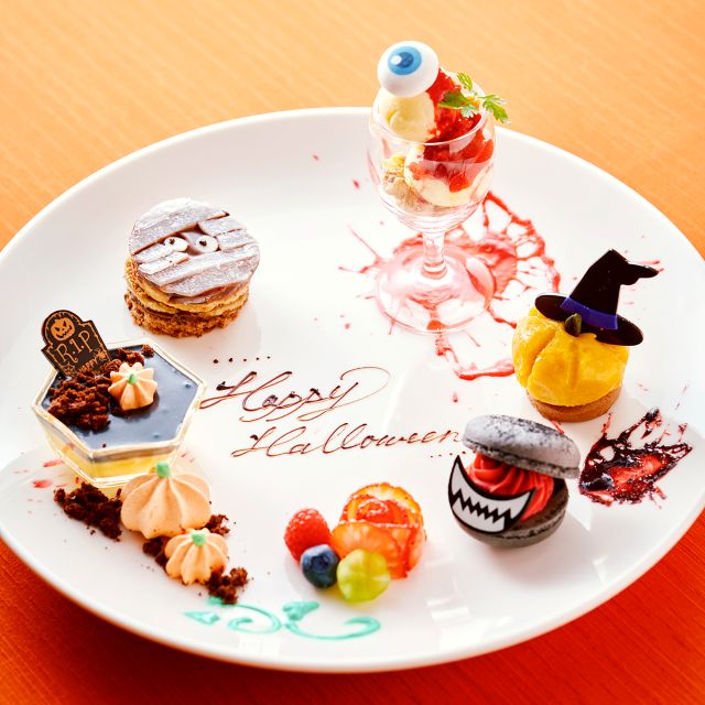 7回目を迎えるスイーツ企画では、新作3種を含む5種類のスイーツのほか、アフォガード風グラスデザートやマカロン、オペラなどにシェフの遊び心を添えたスイーツがひと皿に集うスイーツプレート「ハロウィーンカーニバル」が提供されています。