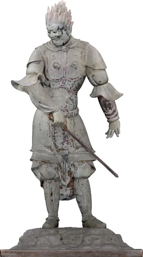 「悠久」の1号車デッキにあるギャラリースペースでは、2026年9月30日(水)までの期間限定で、国宝「新薬師寺 十二神将 伐折羅(ばざら)大将立像」のレプリカが特別展示されます。本レプリカは、オリジナルを3D計測したデータを使用した5分の1サイズです。