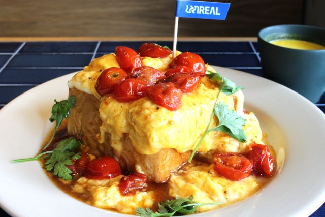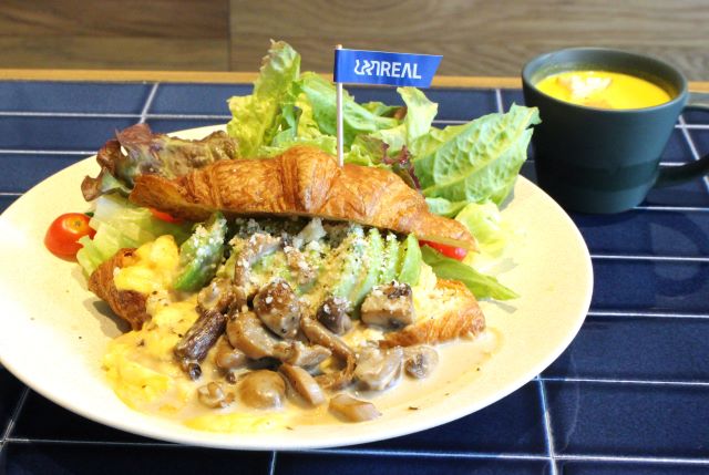 「UNREAL」では、姉妹ブランド「ボーノベーカリー」の人気パンを主役にしたモーニングメニューがずらり。朝から贅沢気分を味わえる、彩り豊かなプレートが揃います。
