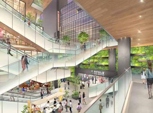 なんばエリアの1階路面には、なんば広場やなんさん通りとフラットに繋がり、一体的な賑わいを創出する店舗などを配置。地下から地上までの吹抜けを設けたり、地下街「NAMBAなんなん」との接続口を地下2階に拡幅したりするなど、周辺の商業施設の一体感がアップします。