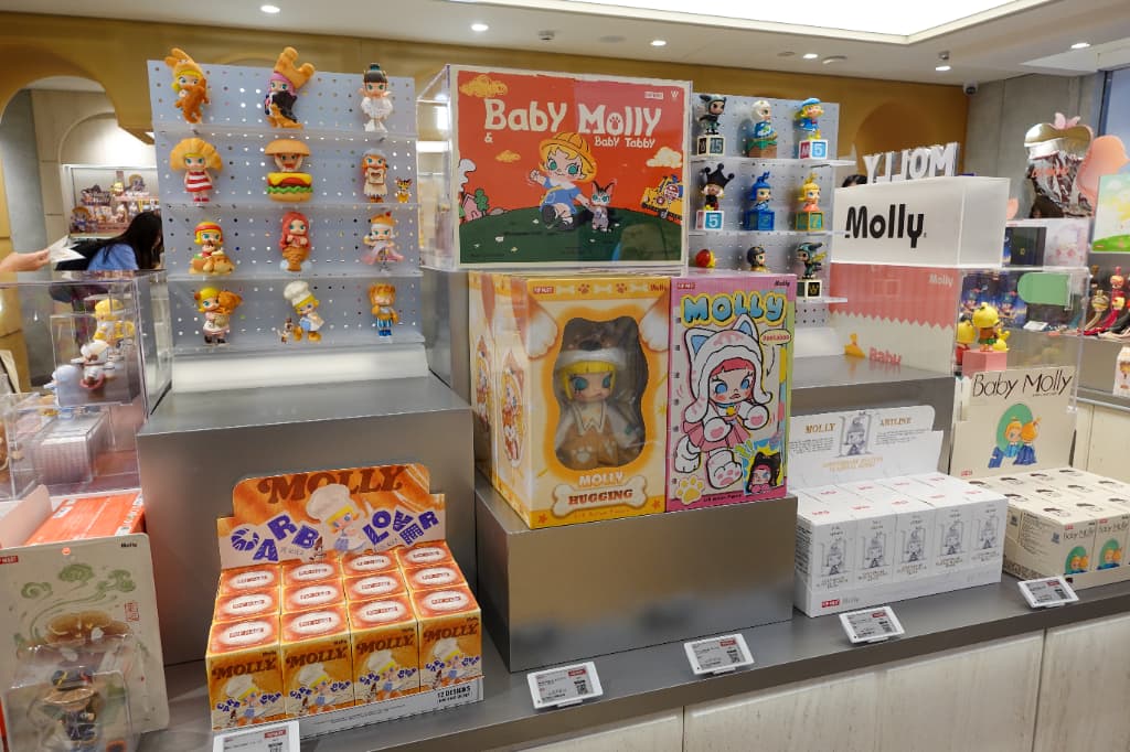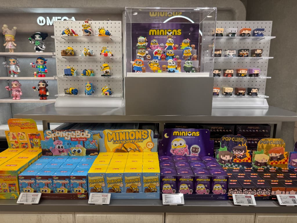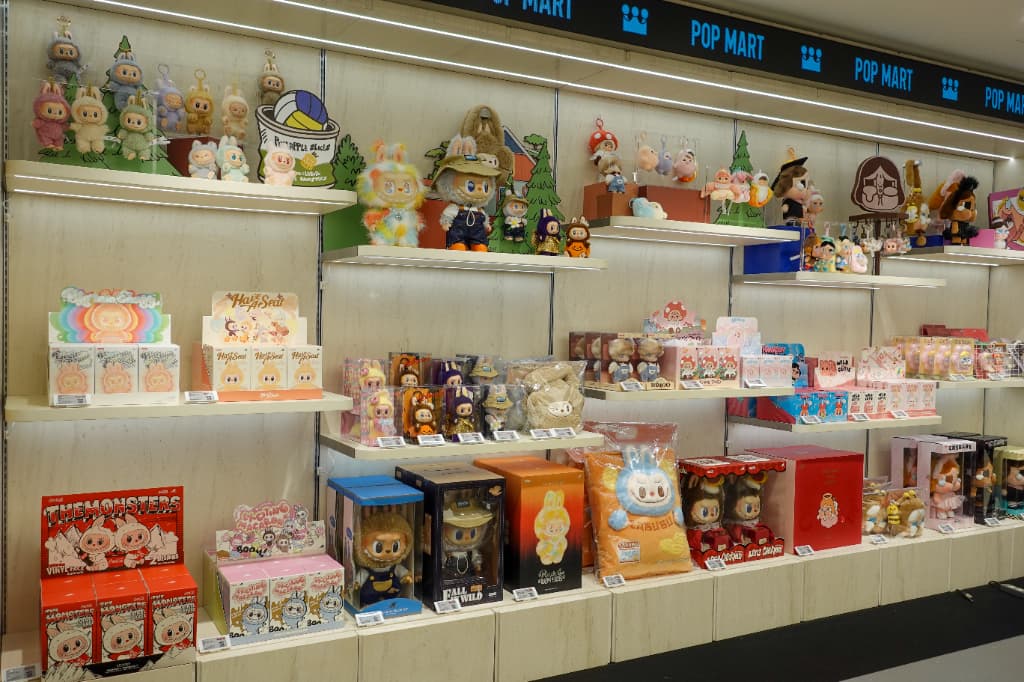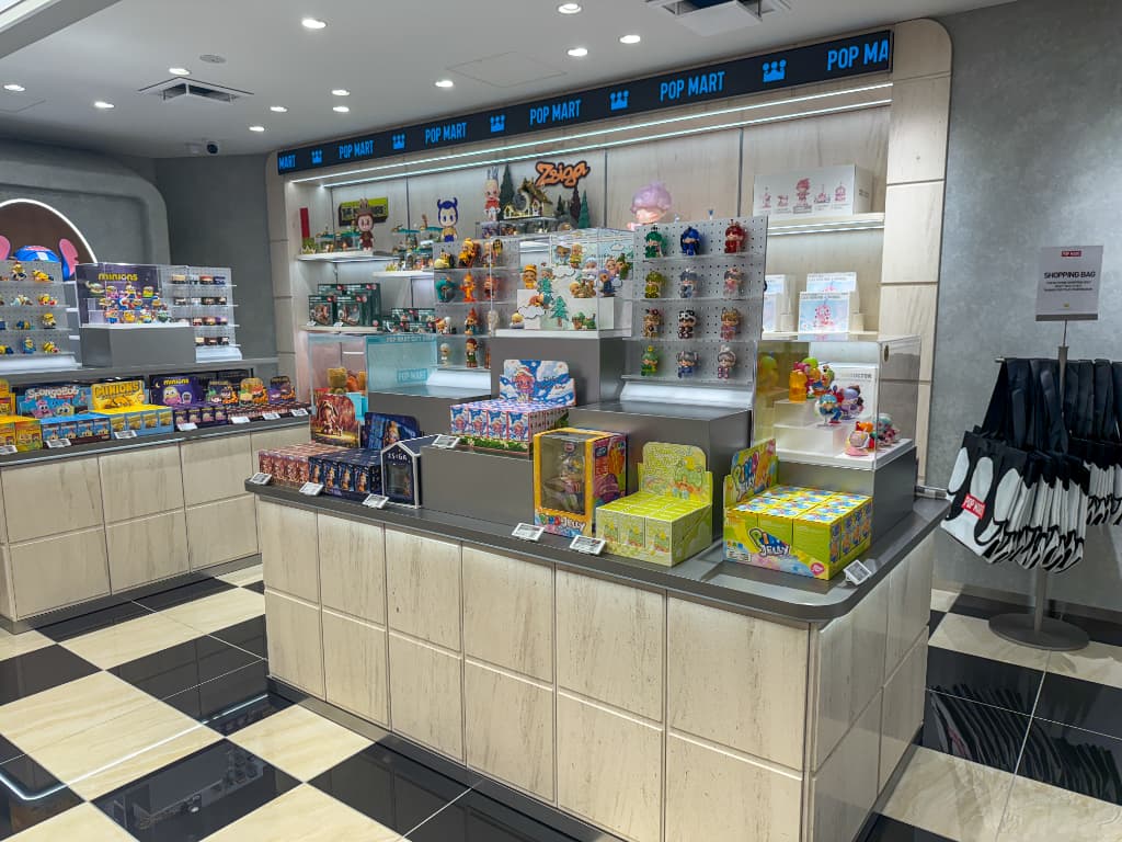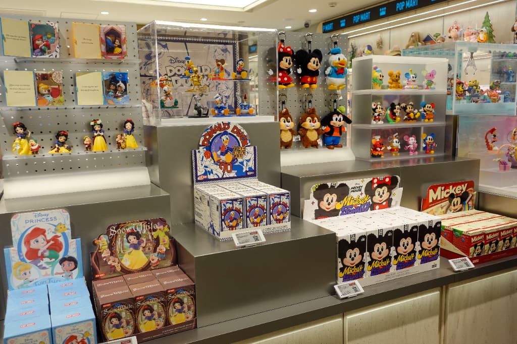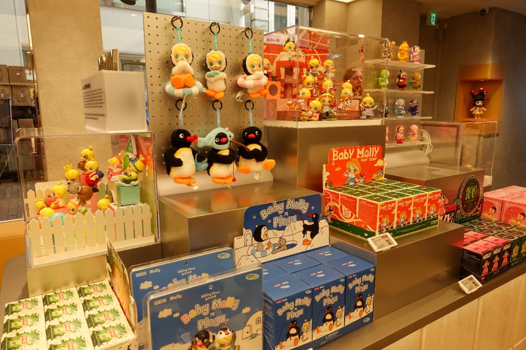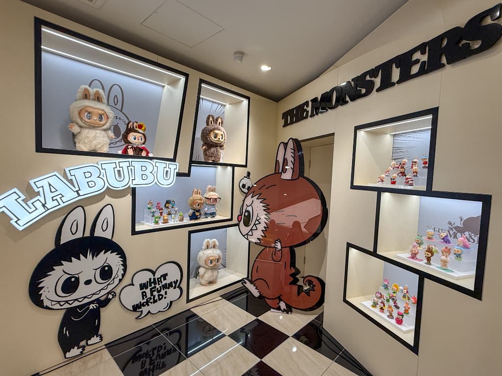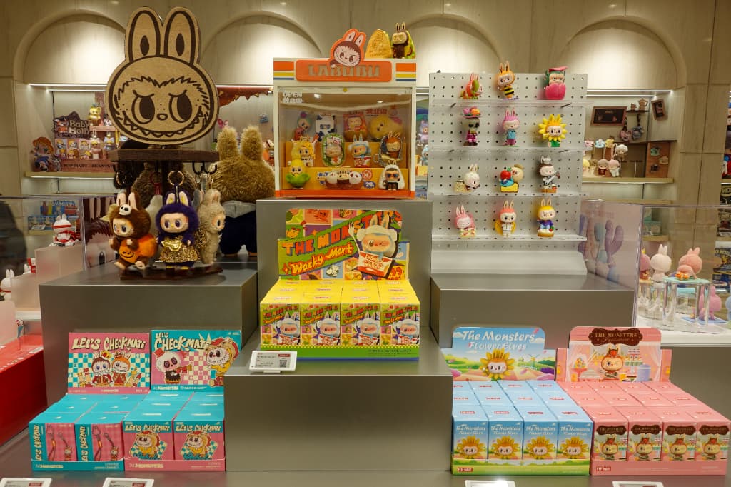 店内には人気キャラクターたちがぎっしり。入ってすぐのところには話題の「LABUBU」をはじめあらゆるキャラクターのブランドボックスが並び、ぬいぐるみやフィギュアなどバリエーションも豊富です。