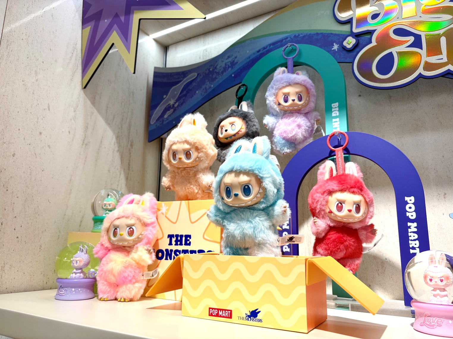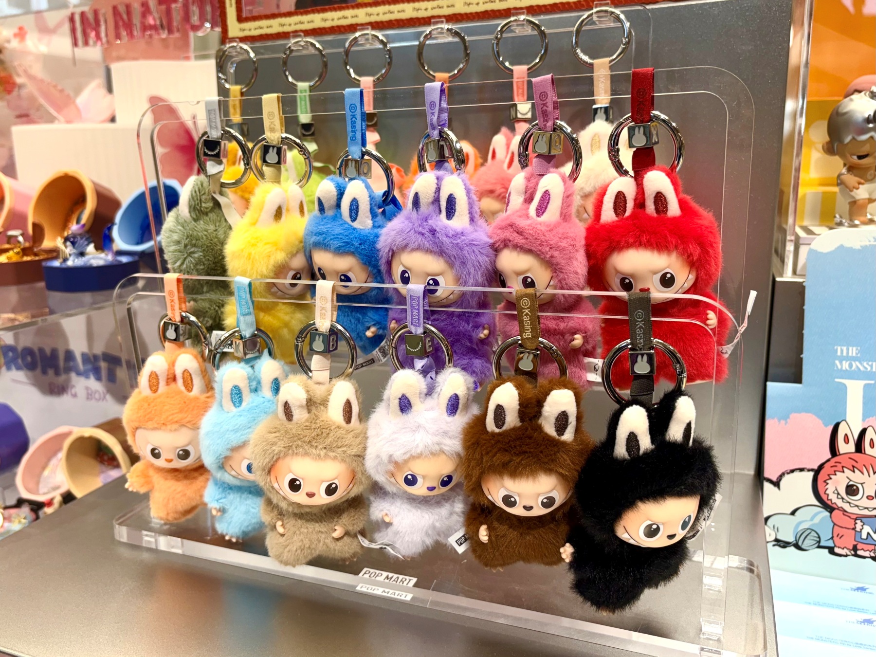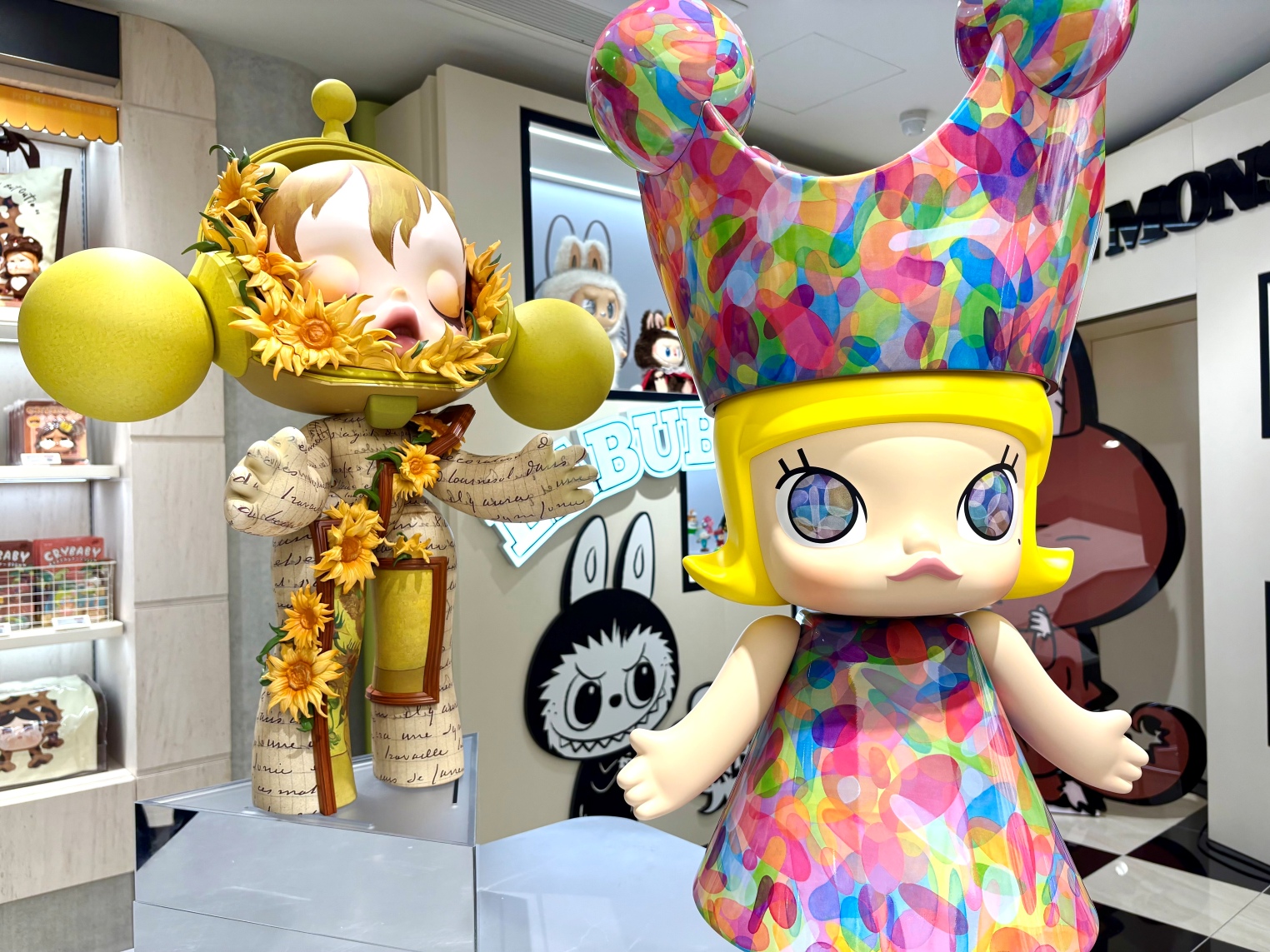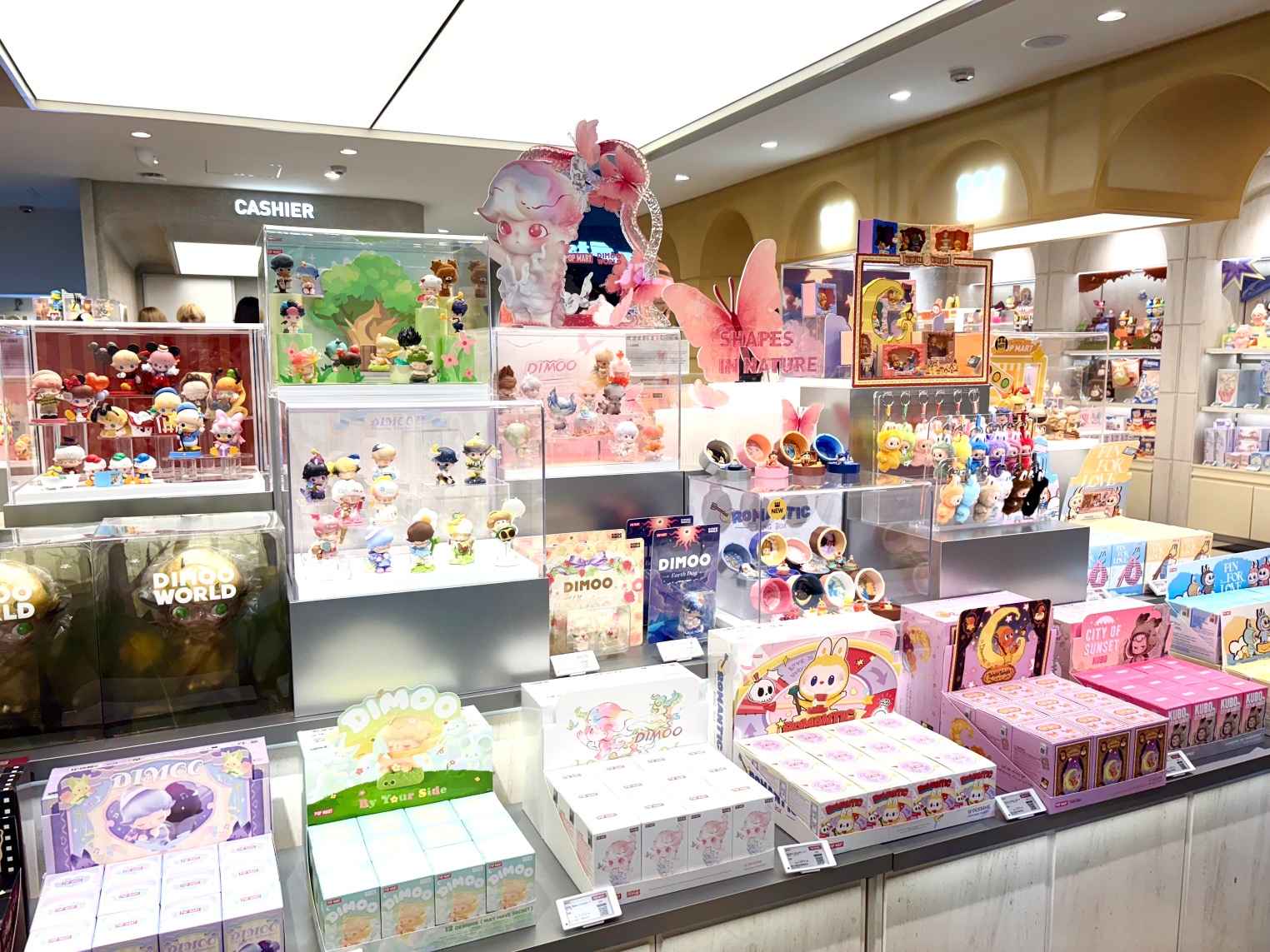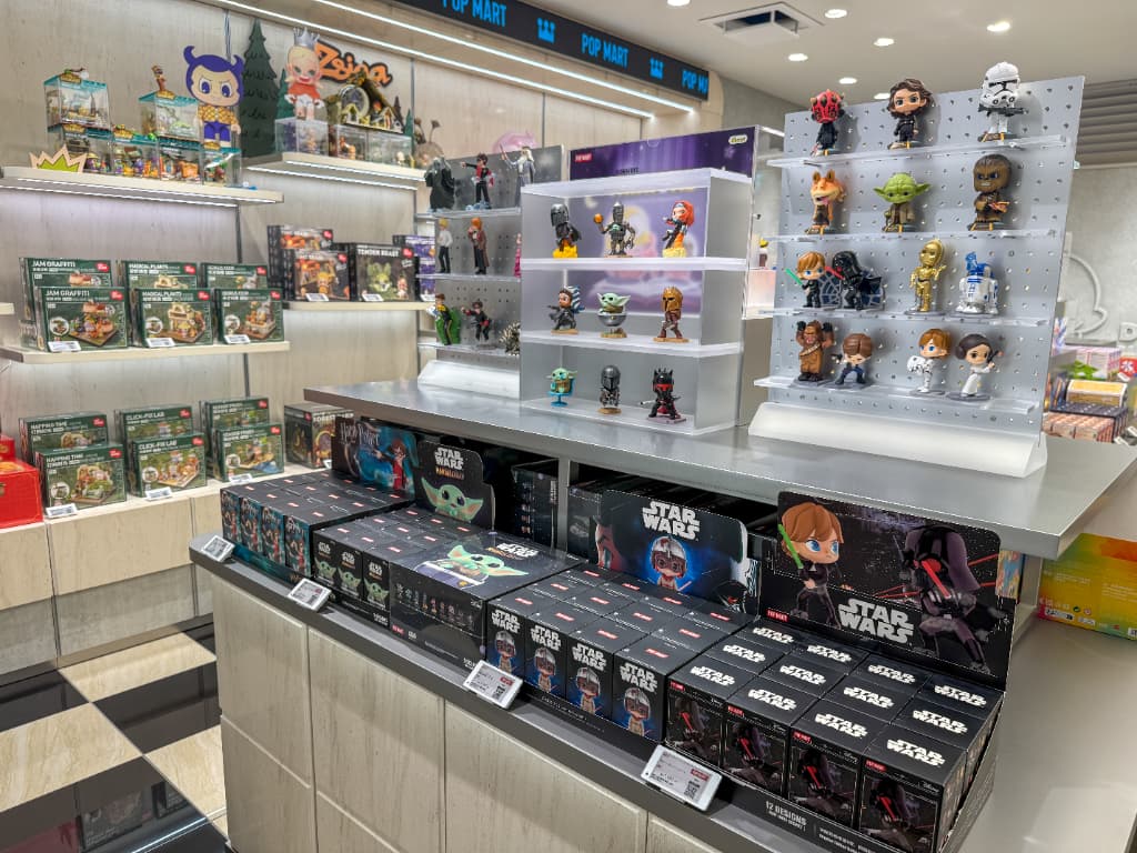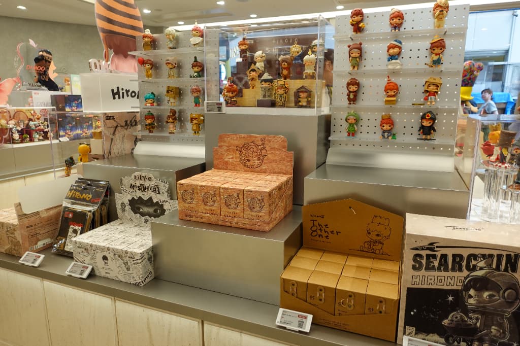 店内には人気キャラクターたちがぎっしり。入ってすぐのところには話題の「LABUBU」をはじめあらゆるキャラクターのブランドボックスが並び、ぬいぐるみやフィギュアなどバリエーションも豊富です。