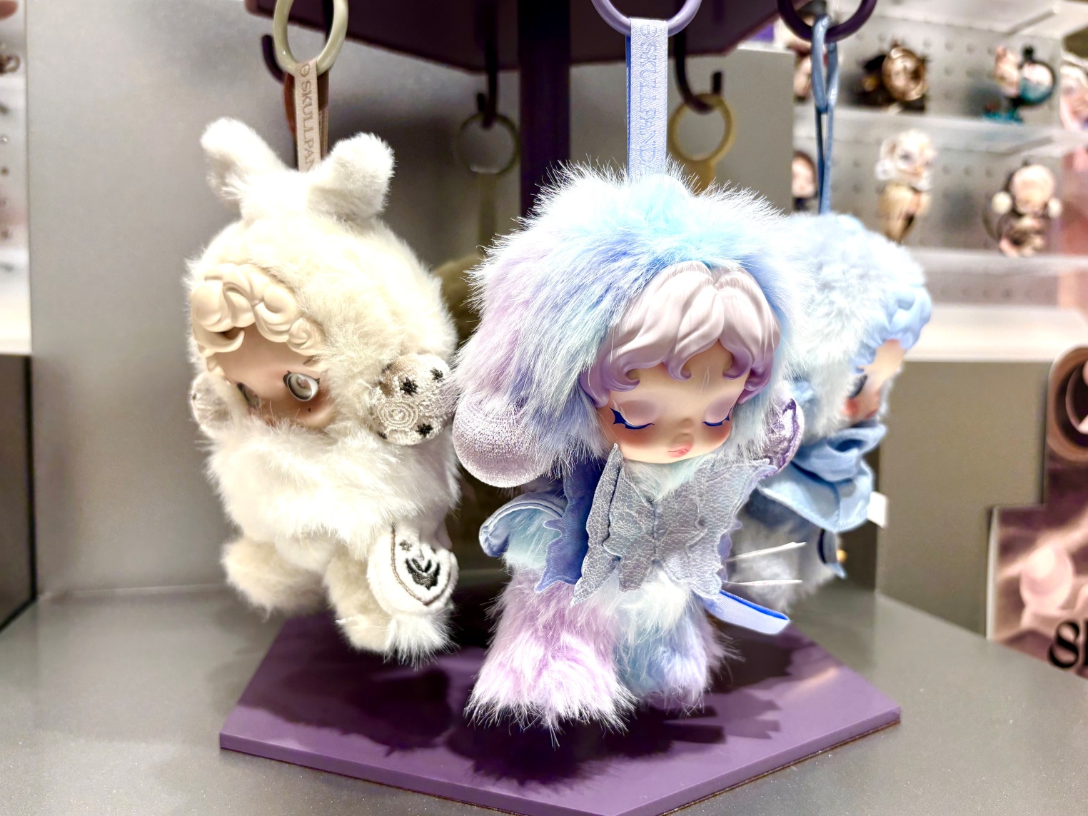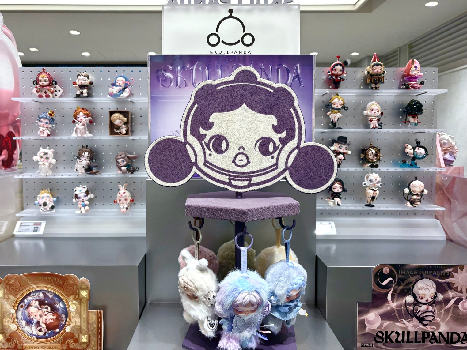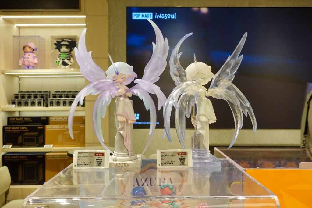 「POP MART」といえば「LABUBU」だけじゃない! 三吉さんのお気に入り「SKULLPANDA」をはじめ、「AZURA(アズラ)」「HIRONO(ヒロノ)」「DIMOO(ディムー)」など、個性豊かなキャラクターが大集合。
