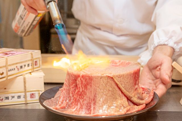 1700度の火力で一気に炙ることによって和牛のうまみをギュッと閉じ込める調理や盛り付け工程など、撮影もOK。これまでもSNSにはたくさんの画像がアップされています。