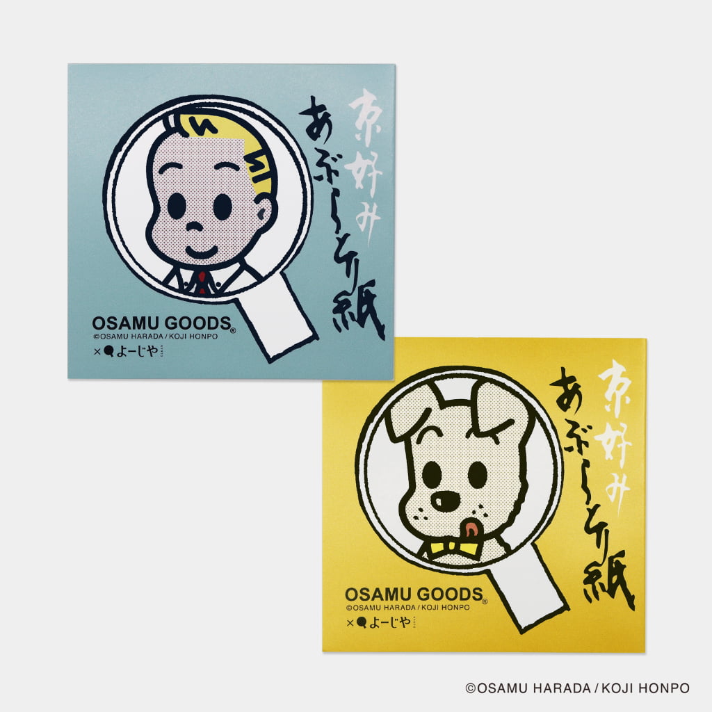 「よーじや」の定番「あぶらとり紙」の裏表紙が、「OSAMU GOODS(R)」のキャラクターデザインに♡ 「ジャック」「ドッグ」の2冊セットと、「ジル」「キャット」の2冊セットが展開されます。