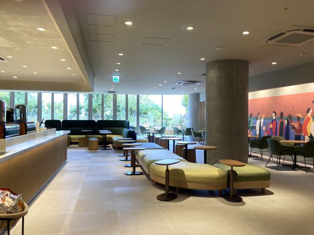 店内は西日本最大規模を誇る広さで、ベビーカーや車いすでも通りやすいゆったりとした設計。ベビーカーをそばに置いたまま座れる席も多く、シームレスに配置された座席が開放感を演出しています。