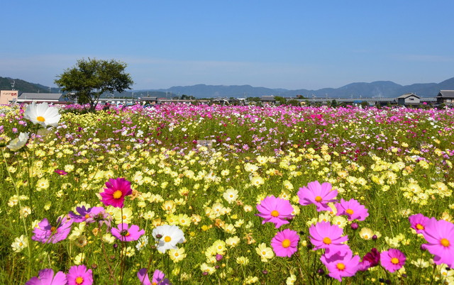 約4.2ヘクタールの広大な敷地に、20品種・約800万本のコスモスが咲き誇る期間限定イベント。早咲きの品種や珍しい品種など多彩なラインナップで、いつ訪れても美しいコスモスの魅力に浸れます。会期中は、丹波亀岡の味覚が一堂に集結する「丹波味わい市」や、ユーモラスな作品がそろう「創作かかしコンテスト」を実施。ドッグランが併設されているので、ワンちゃんとのおでかけにもぴったりです。