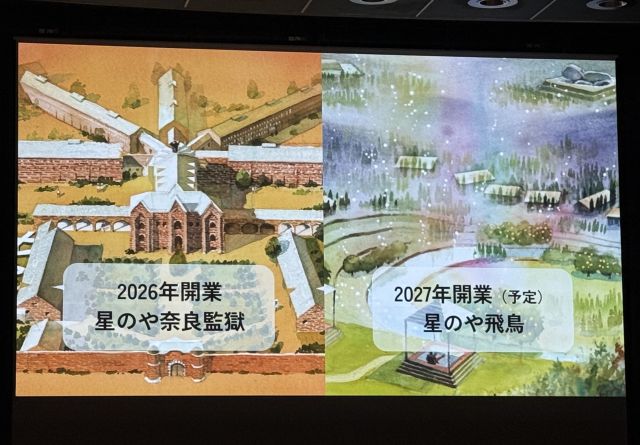 国内外73施設を運営する「星野リゾート」では、奈良県内に3つの新施設を計画しています。2026年には「奈良監獄ミュージアム」と「星のや奈良監獄」を、2027年には「星のや飛鳥」を開業予定です。