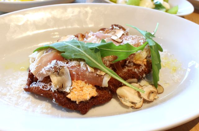 柔らかな仔牛のカツレツにコクのあるチーズソースを合わせたメイン。マッシュルームの香りがふわりと広がります。