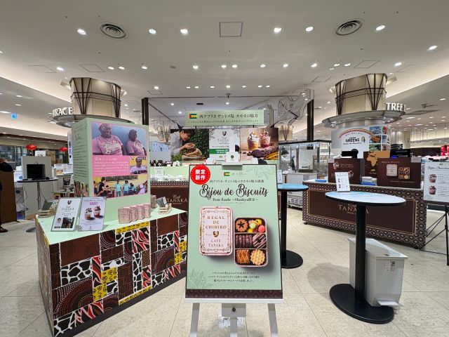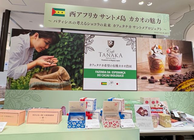 阪急うめだ本店の地下1階「ツリーテラス」では、2025年10月7日(火)まで「カフェタナカ」の期間限定イベント「西アフリカ サントメ島カカオの魅力」を開催中。内覧会でのお披露目の様子とともに、その注目ポイントをご紹介します。