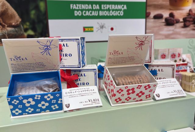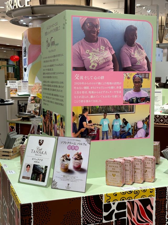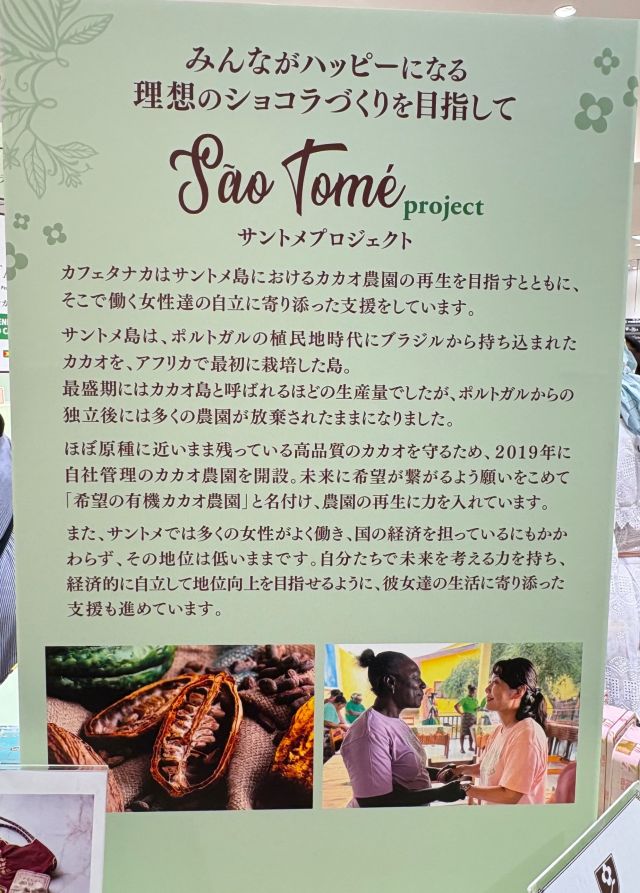 今回のイベントでは、その活動を映像や資料で紹介しながら、サントメ島産カカオを使用した特別な商品を販売しています。
