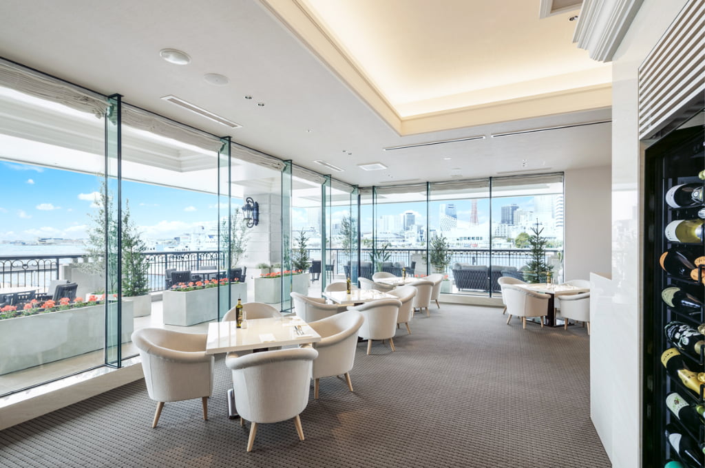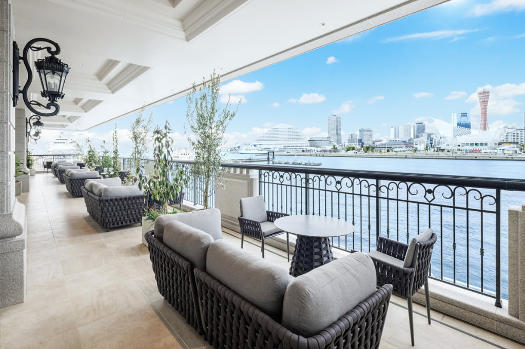 「ami神戸」では、落ち着いた店内席のほか、神戸港を一望できるテラス席でもアフタヌーンティーの注文が可能。