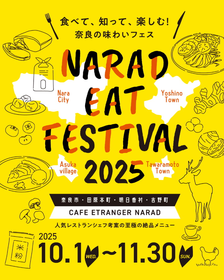 奈良市観光センター「ナラニクル」内にあるカフェ&レストラン「CAFÉ ETRANGER NARAD」で、2025年10月1日(水)〜11月30日(日)の2か月間、奈良の食の魅力を味わえるグルメイベント「NARAD EAT FESTIVAL 2025」が開催中。