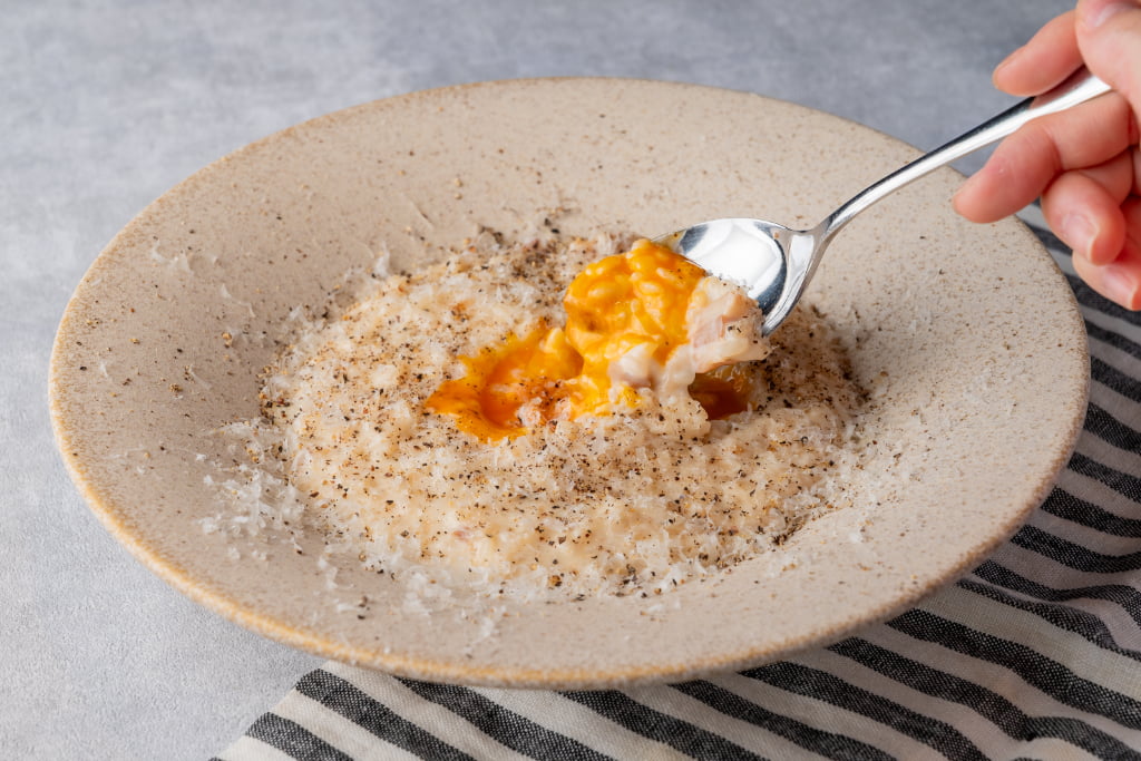 「吉野MICA卵と、安萬侶さん米のカルボナーラリゾット」(1,600円) -
