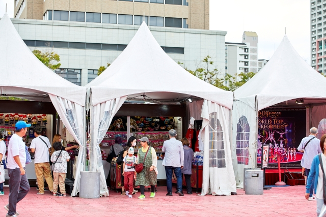 会場は東大阪市役所前の特設大テント。電車なら近鉄けいはんな線「荒本駅」から徒歩3分ほどで到着!
