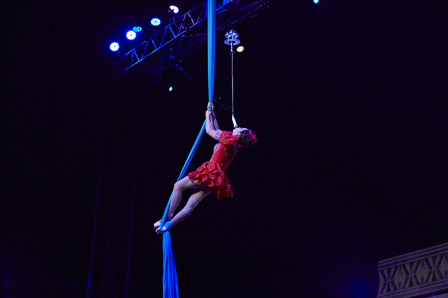 サーカスの華・空中ブランコ。少しでもタイミングがずれると……ハラハラしてしまいますが、はるか頭上で笑顔を見せるパフォーマーには驚きです。