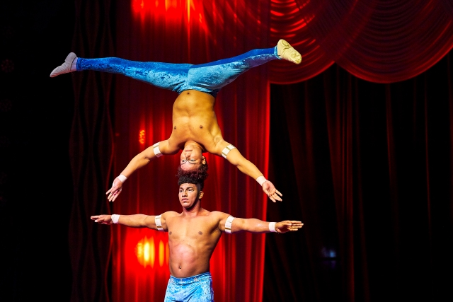 サーカスといえば「動」の演出が多いなか、こちらは「静」。キューバ出身の兄弟が魅せる肉体だけで勝負する大技に、人間の体ってここまで極められるの?と感動。