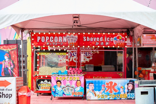 ソフトドリンクのほか、生ビールやノンアルコールビール、そして定番のポップコーンやフランクフルトといった軽食を販売している売店も入り口付近にあり、先に購入しておいて、開演時間までに余裕を持って席についておくのがベター。