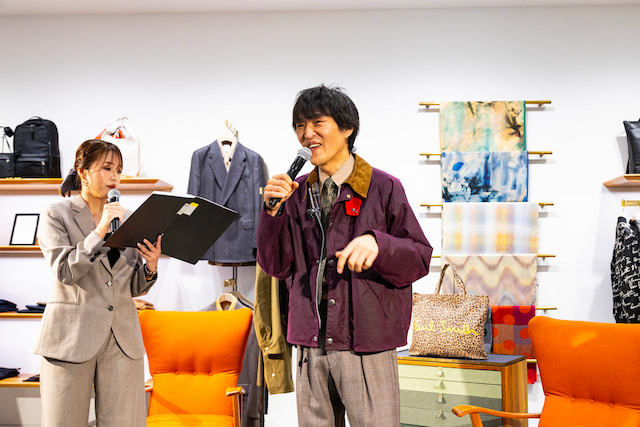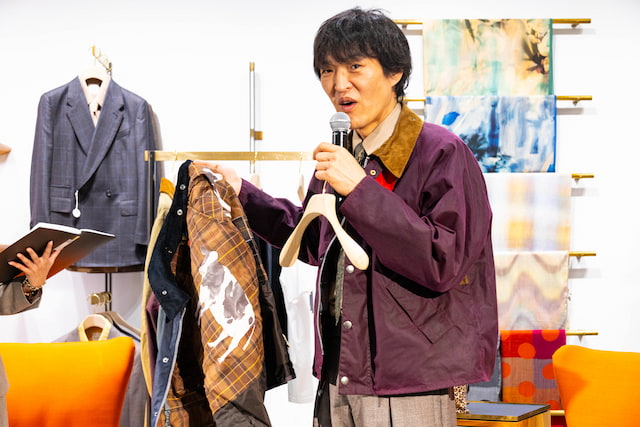 そしてロングコートを手にすると「これもエエ、これも好きやわ」と笑顔を見せながら、「(この裏地なら)家を出るときテンションの目盛り、2つくらい上がる」とコラボの完成度を改めて称賛しました。