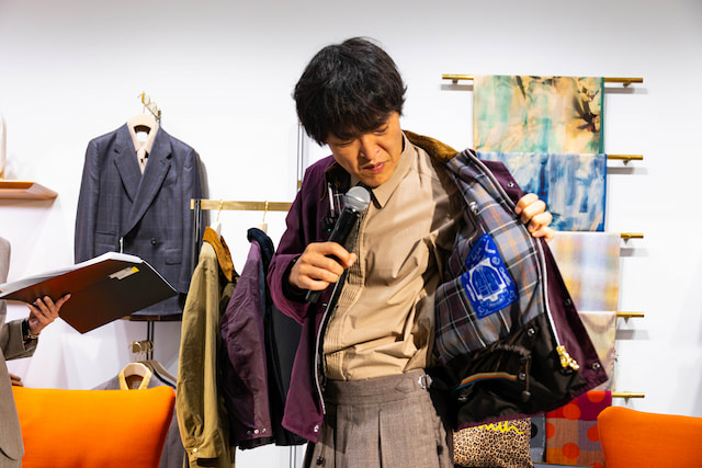 さらに、裏地に施されたパッチワークデザインを見せながら「こんな裏地あります?」「結局、大人は裏地なんです」と名言を放ち、会場を沸かせました。