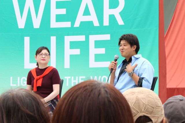 ショーのあとは、本イベントを企画した大阪医科薬科大学の河野恵美子先生と、ユニクロ ダイバーシティ推進チームの塩田知弘さんによるトークセッションが行われました。