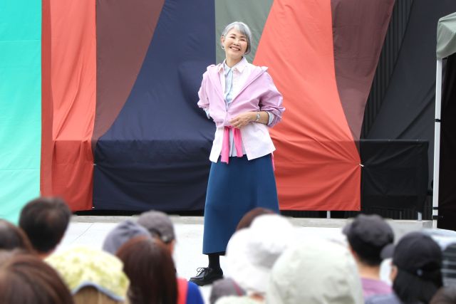 トップバッターは、71歳でYouTubeチャンネルを開設し人気を集めるファッションユーチューバー・ロコリさん。颯爽と登場すると、客席からは「かわいい!」「素敵!」という歓声が飛び交いました。