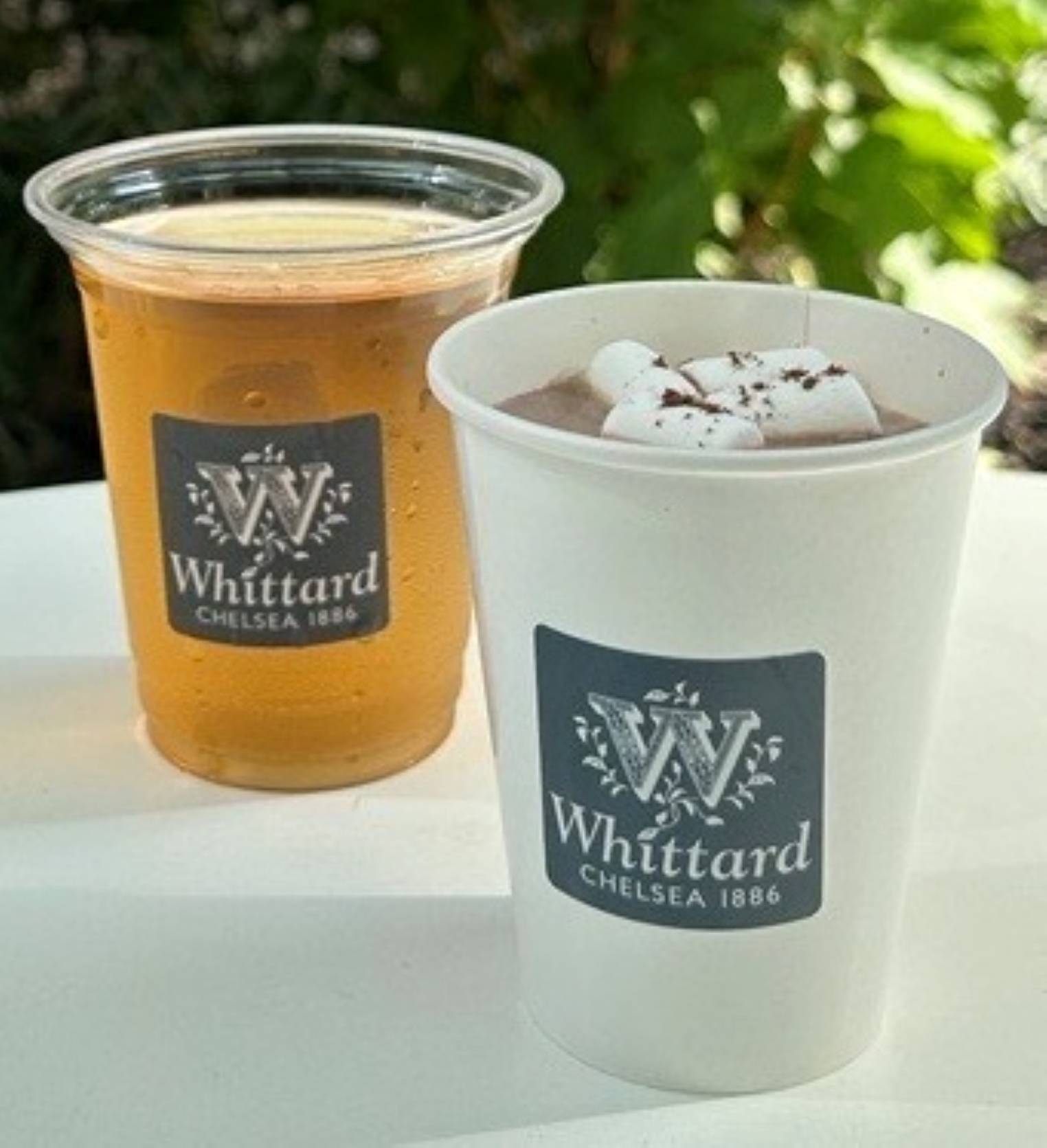 左から、「ウィッタードオブチェルシー」の「アールグレイアイスティー」(500円) ※各日限定80、「ラグジュアリーホットチョコレートドリンク」(770円) ※各日限定60。いずれも後半のみ、9階 祝祭広場にて販売 -