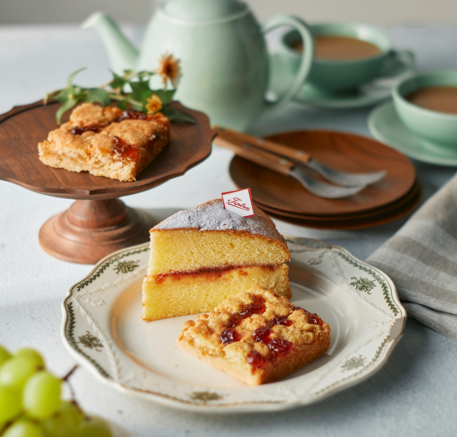 「チップトリー・ティールーム」の「ヴィクトリアスポンジケーキ」(1カット/756円)、「ショートブレッドジャムバー」(1個/441円) ※後半のみ、9階 催場にて販売 -
