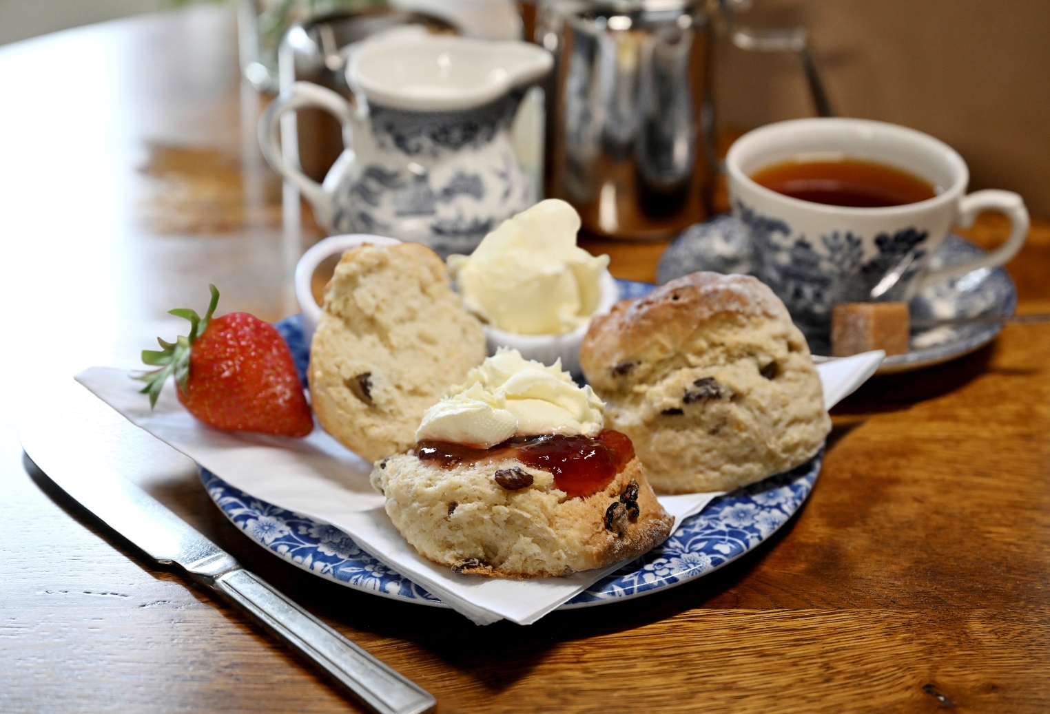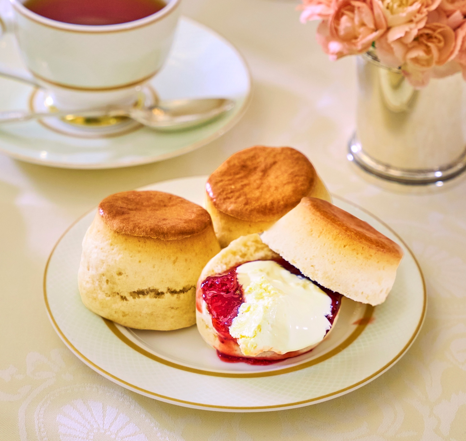 「ティ・フント・イル・ボントティールーム」の「クリームティーセット(スコーン<サルタナレーズン>2個、ジャム、クロテッドクリーム、紅茶)」(1人前/2,500円)ほか ※混雑時は整理券の配布や席の利用時間を設ける場合あり、9階 催場にて販売 -