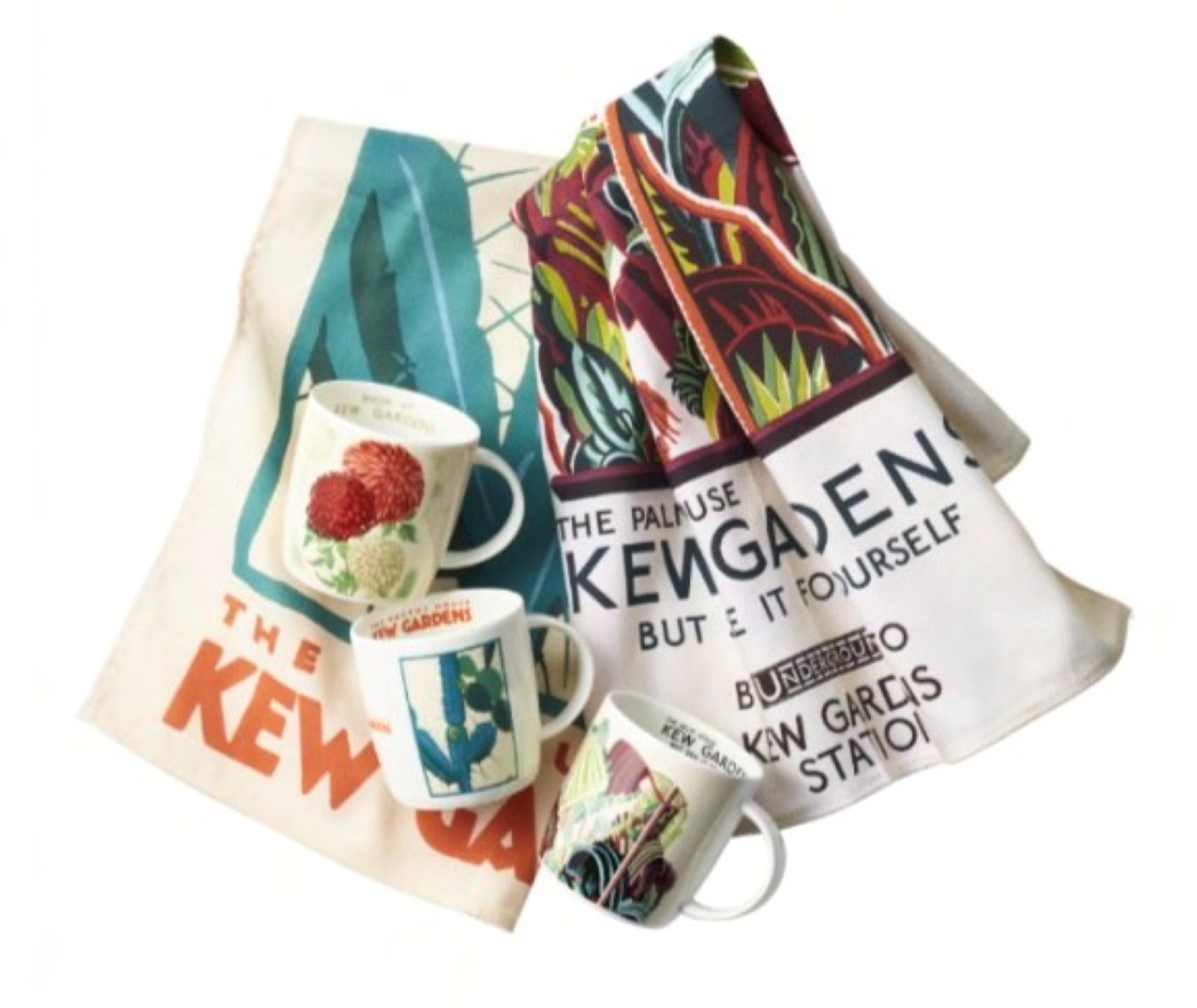 イギリス王立の植物園キューガーデンに咲く花や植物をモチーフにした「ティータオル」(各2,970円)、「マグカップ」(各4,400円) ※後半のみ、9階 祝祭広場にて販売 -