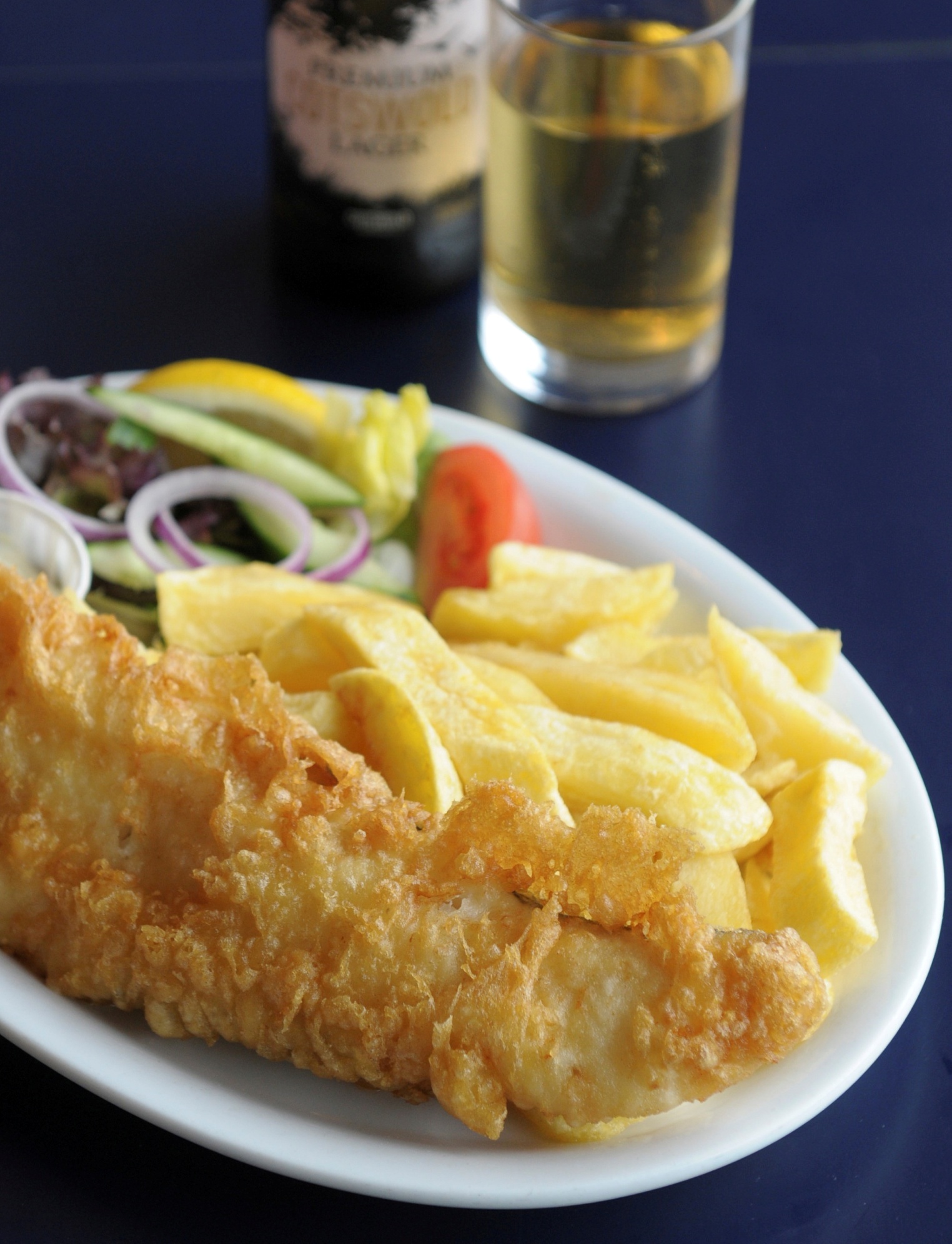 「ヤム・ロード・フィッシュ・アンド・チップス」の「フィッシュ&チップス」(レギュラー/1,890円、ラージ/2,538円) ※タルタルソース・カレーソースのいずれかをトッピング可能(追加ソースは1個あたり別途108円)。各日限定80、前半のみ、9階 催場にて販売 -