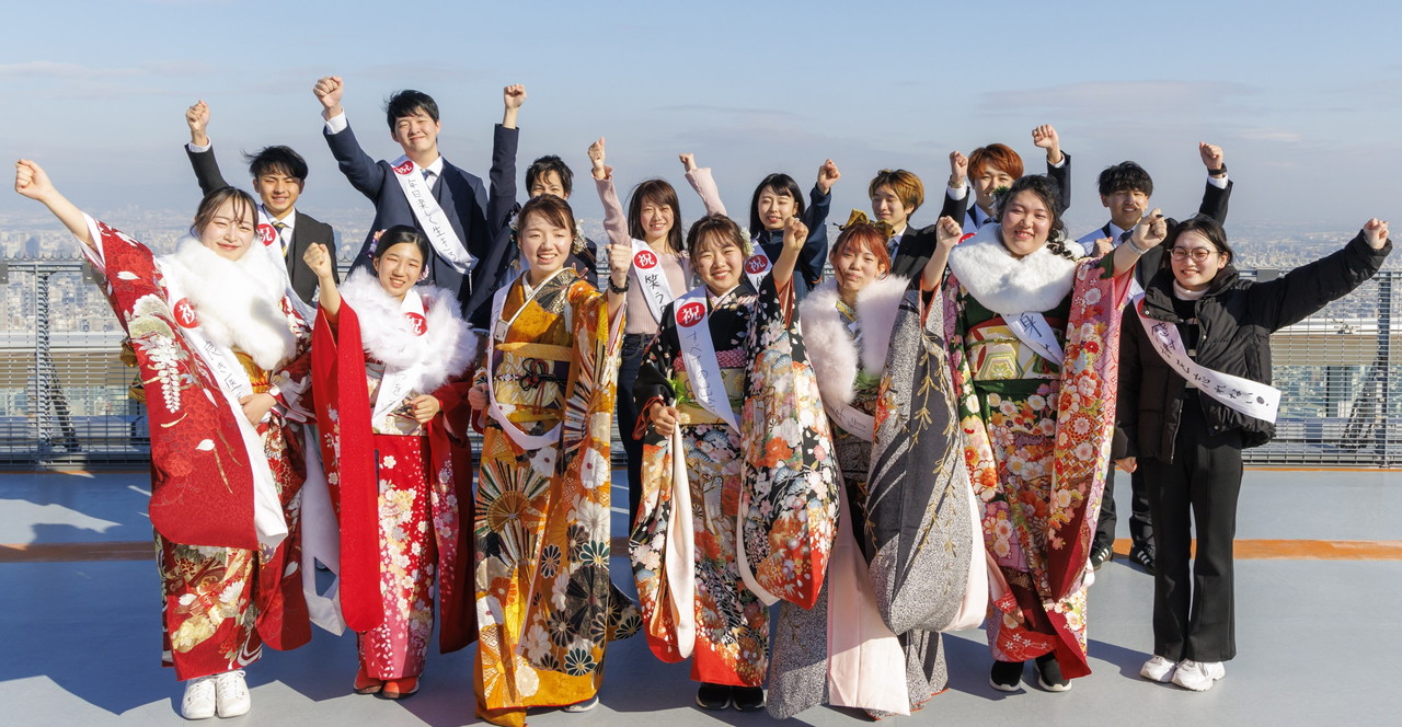 いつもTVなどでイベントの様子を見ていますが、二十歳を迎えた人たちがめちゃくちゃ笑顔で楽しそうな印象があります。一生語れる自慢になると思うので、ぜひ和装で「あべのハルカス」踏破を目指してみてください!