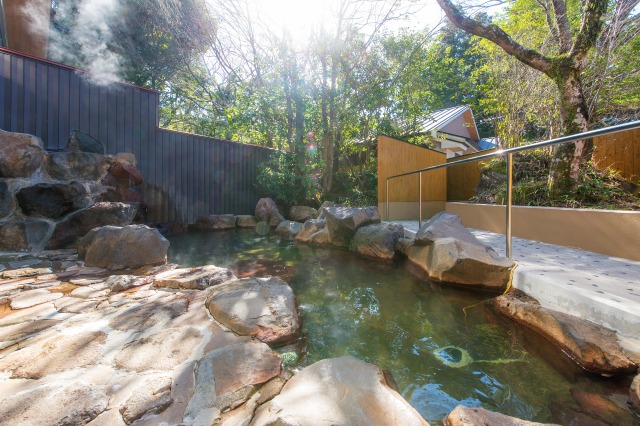 対して、上湯から約1kmほど下った場所にある下湯には、自然を感じられる庭園風露天風呂や日光が差し込む大浴場と蒸し風呂、別棟には2か所の貸切風呂が設置されています。宿泊可能な6棟のケビンも併設され、上湯とはまた違った楽しみ方ができるのも見どころです。