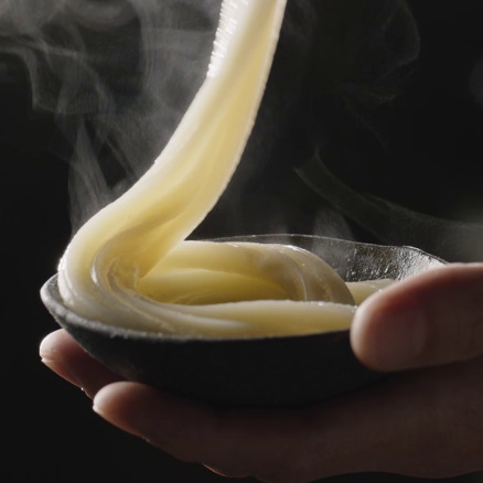 ひと口すすると、小麦の風味がほのかに香り、噛む度にふわふわ、もちもちの食感が。粉から打つ、うどんそのもののおいしさをぜひ店舗でお試しください!
