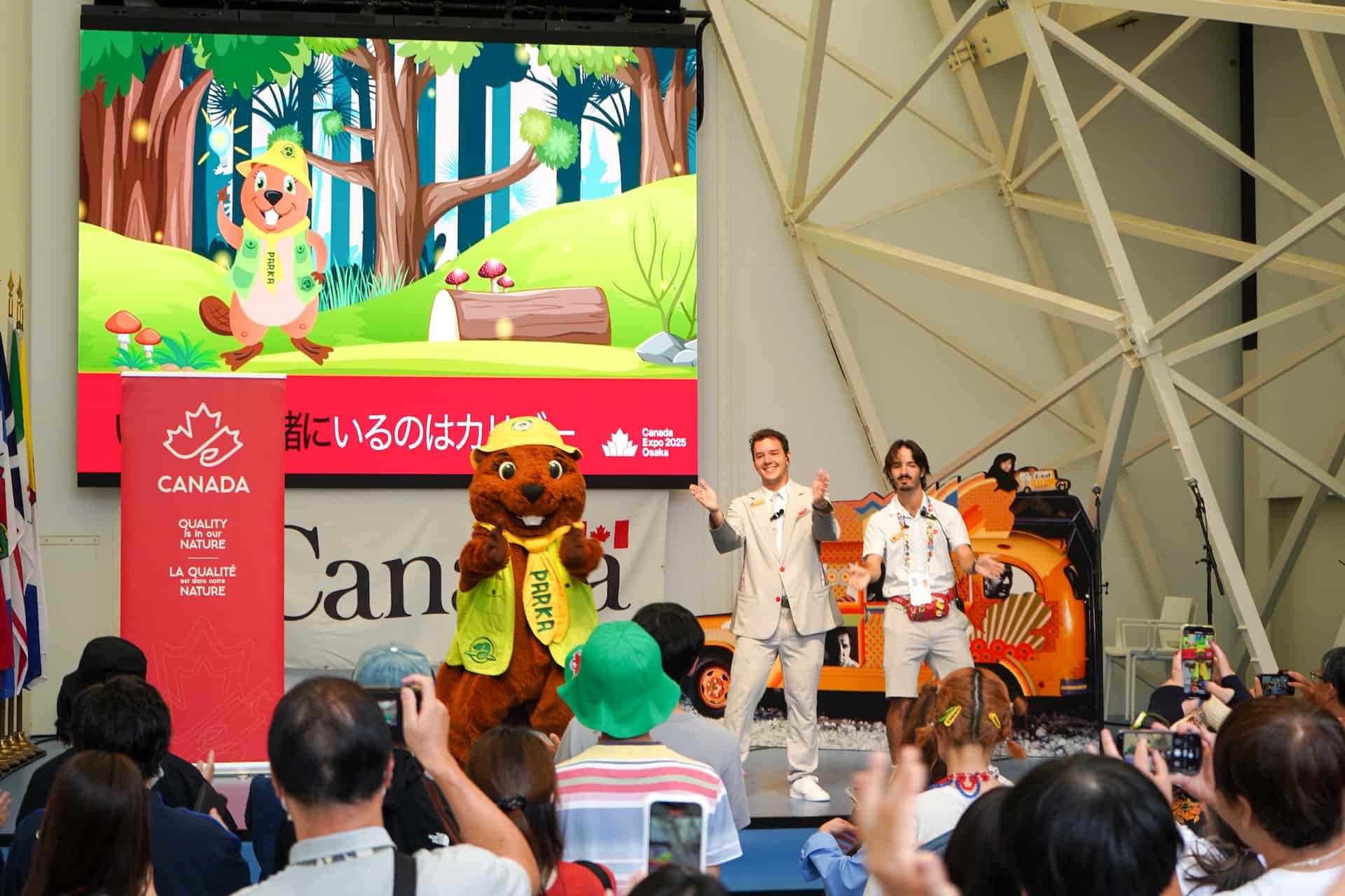さらに、カナダ国立公園庁のマスコットキャラクター「パルカ」も登場し、軽快なダンスパフォーマンスを披露。会場では子どもから大人までが一緒に体を動かし、笑顔で記念撮影を楽しむなど、終始にぎやかな雰囲気に包まれました。
