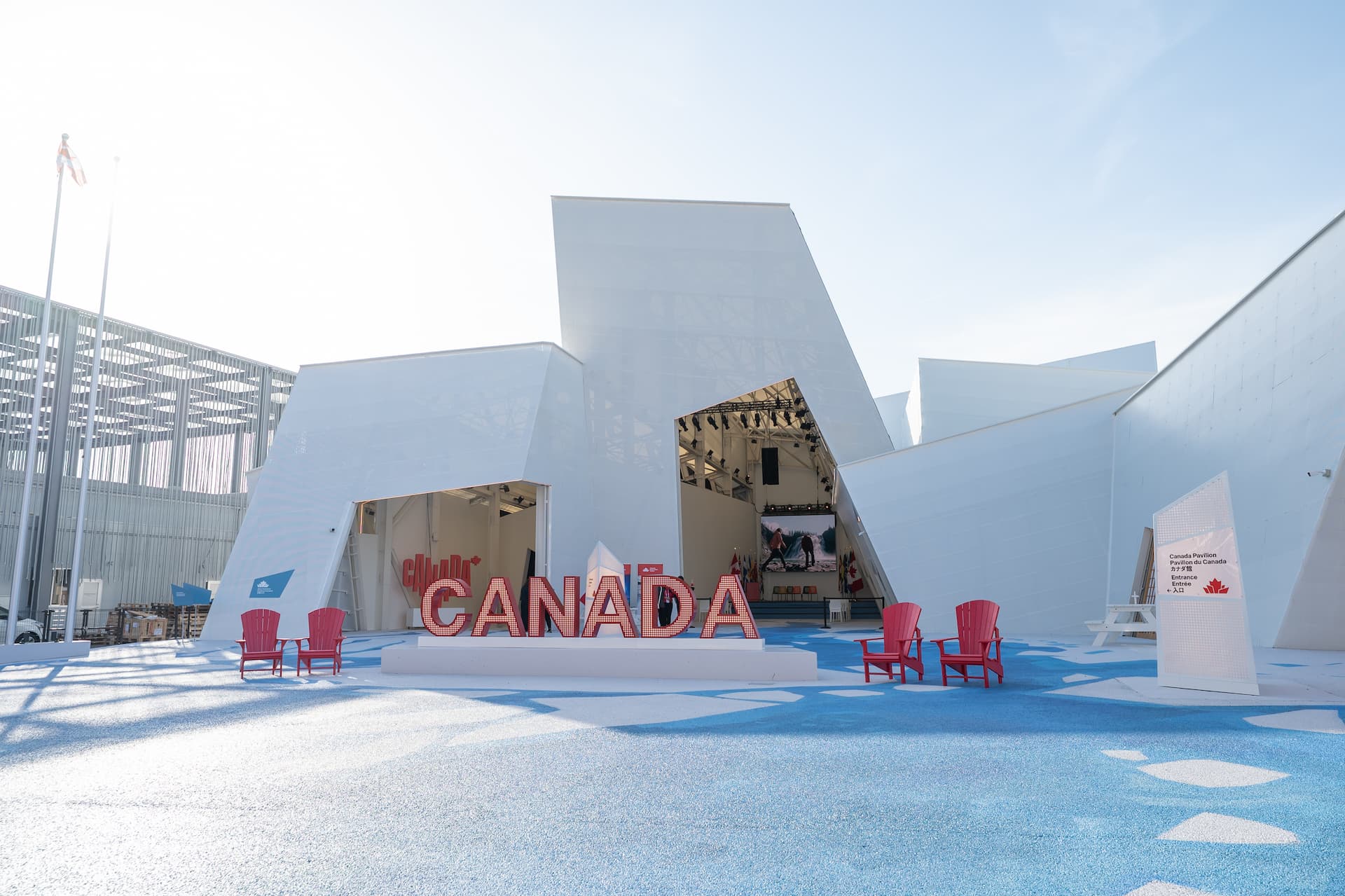 春の川解けをイメージした氷のかたまり“アイスジャム”をモチーフにした外観が印象的なカナダパビリオン。