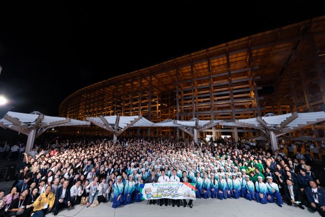 閉館30分前にクロージング感謝セレモニーが行われ、来館者を迎えてきたアテンダントや運営スタッフ500名以上が参加。吉村知事ら関係者からは、半年間パビリオンを支え続けたスタッフへ温かな労いの言葉が贈られました。