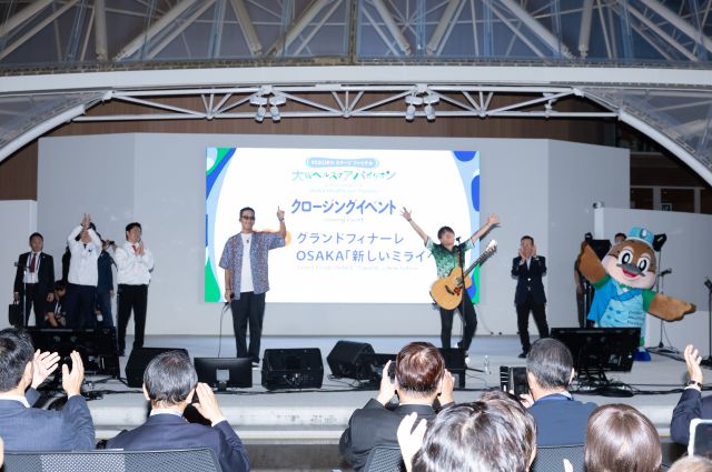 ラストは万博のテーマソング『この地球の続きを』を、来場者と合唱。曲の中で小渕さんが「万博!」とコールすると、来場者が「ありがとう!」とレスポンス。会場が一体となってクロージングイベントは幕を閉じました。