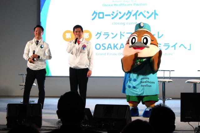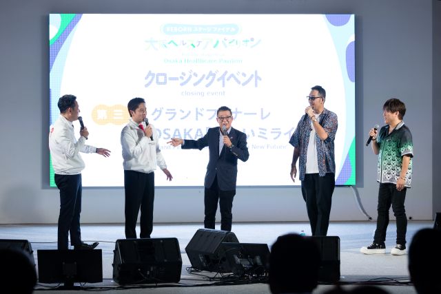 閉幕日の会場は朝から特別な熱気に包まれていました。「大阪ヘルスケアパビリオン」の「リボーンステージ」では、子どもたちによる歌やダンス、出展企業によるトークショーなど、多彩なステージが展開。