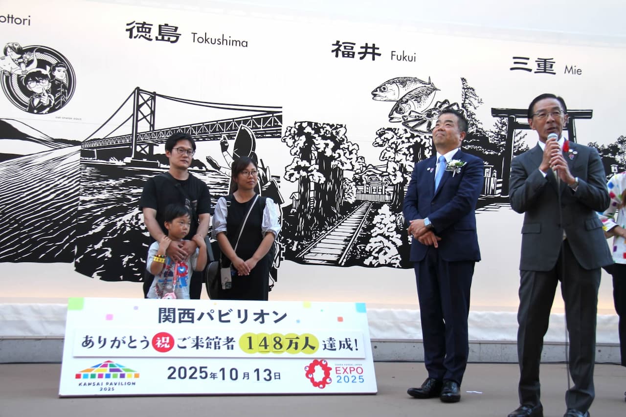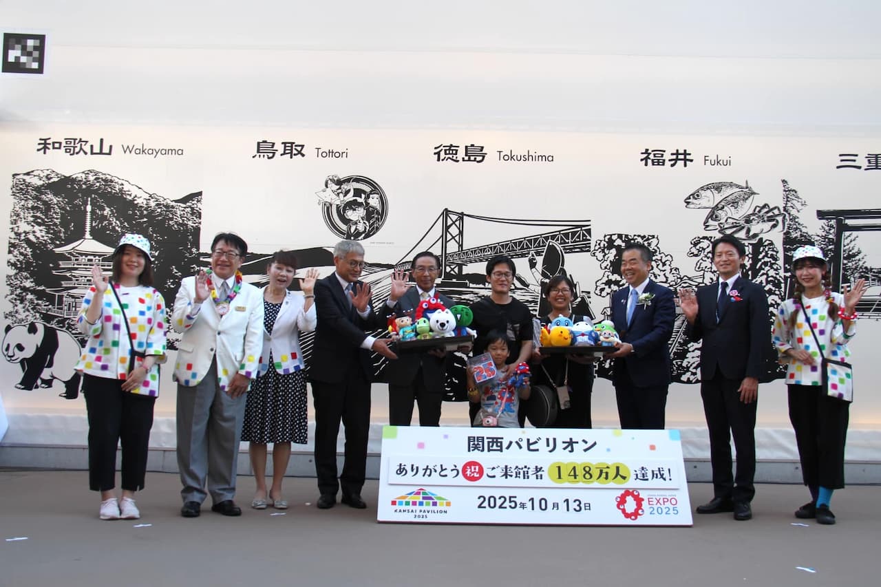 関西パビリオンでは、「ご来館148万人達成記念セレモニー」を実施。「いのち輝く関西 悠久の歴史と現在」をテーマに、滋賀・京都・兵庫・奈良・和歌山・鳥取・徳島・福井・三重の9府県が出展。関西全体の魅力を発信してきました。