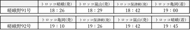 期間中は臨時列車も登場するほか、嵯峨野16号(トロッコ亀岡駅16:30発)以降はすべての列車でライトアップ・イルミネーションが楽しめます。