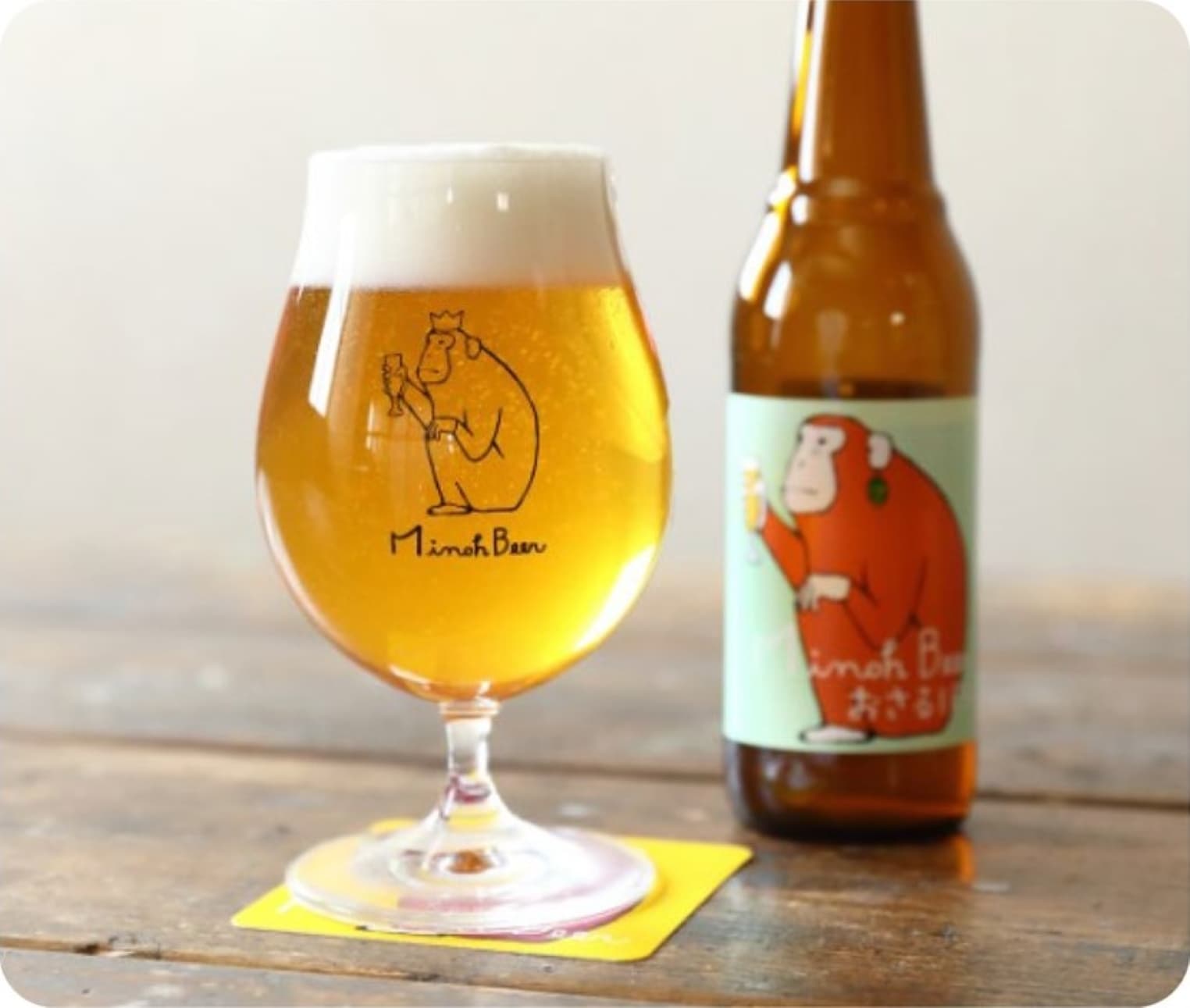 「箕面ビール」の「おさるIPA」(330ml/770円)ほか -